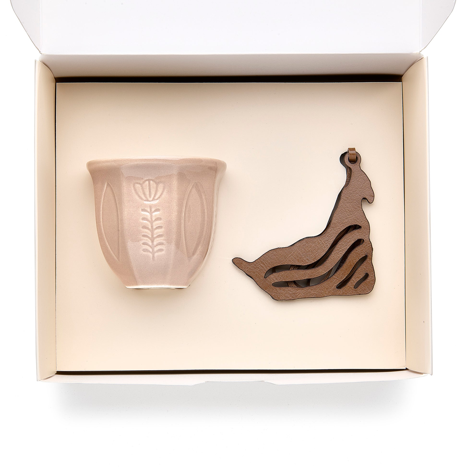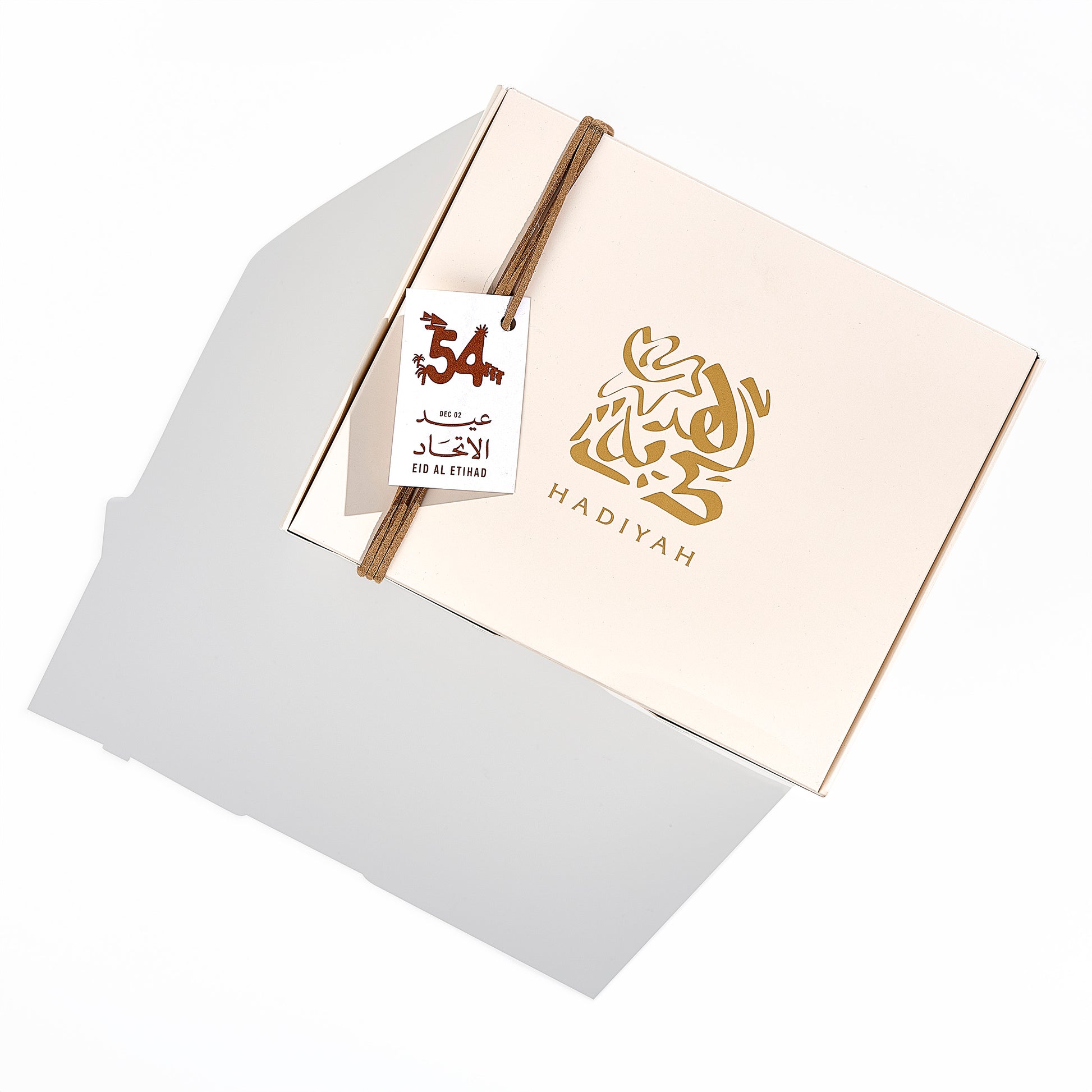 Paired with an elegant bag charm shaped as the UAE map, detailed with flowing waves and desert dunes. This set is designed for meaningful gifting.